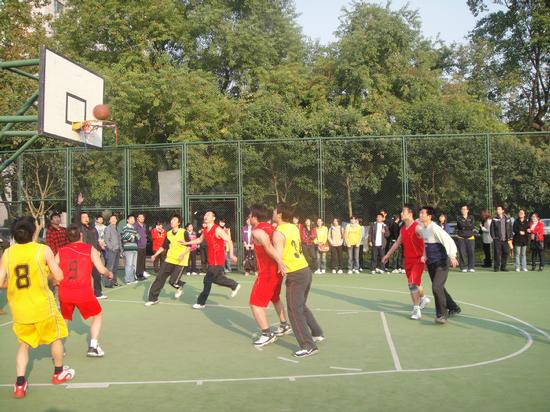 比赛现场气氛热烈,队员们个个情绪高涨,奋勇争先,一次次巧妙的配合、准确的投篮,引来场外观众阵阵掌声。面对拥有3名校教工篮球队队员的机关一分会队,我院队员迎难而上,充分发挥团队精神,积极拼搏,双方比分交替上升,最终我院篮球队以一分之差惜败。我院队员表现出的积极拼搏精神和良好的比赛风格,赢得了场外的观众和到现场观看的校领导的高度评价。我院教工男子篮球队在本届篮球赛中,先后战胜了图书馆代表队、法学院代表队、思想政治理论课教学部代表队、管理科学与工程学院代表队和后勤集团代表队,以五胜一负的优秀战绩获得亚军,为商学院争得了荣誉,体现了我院教师良好的身体素质和精神风貌。(学院办公室供稿)