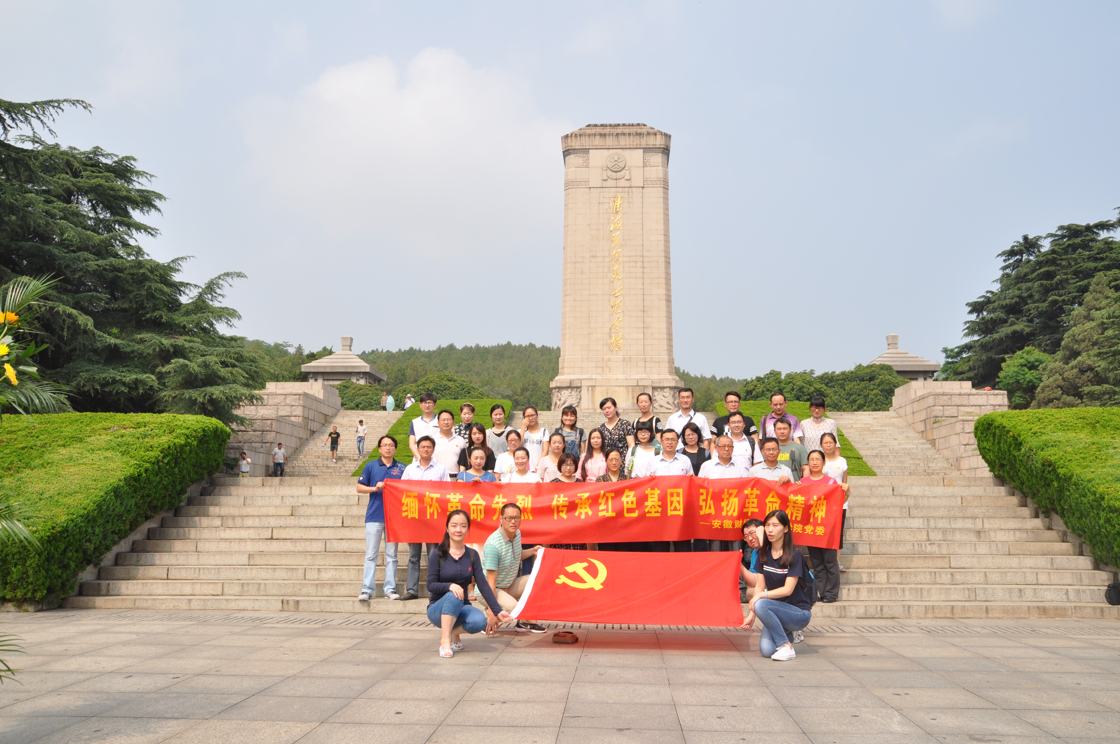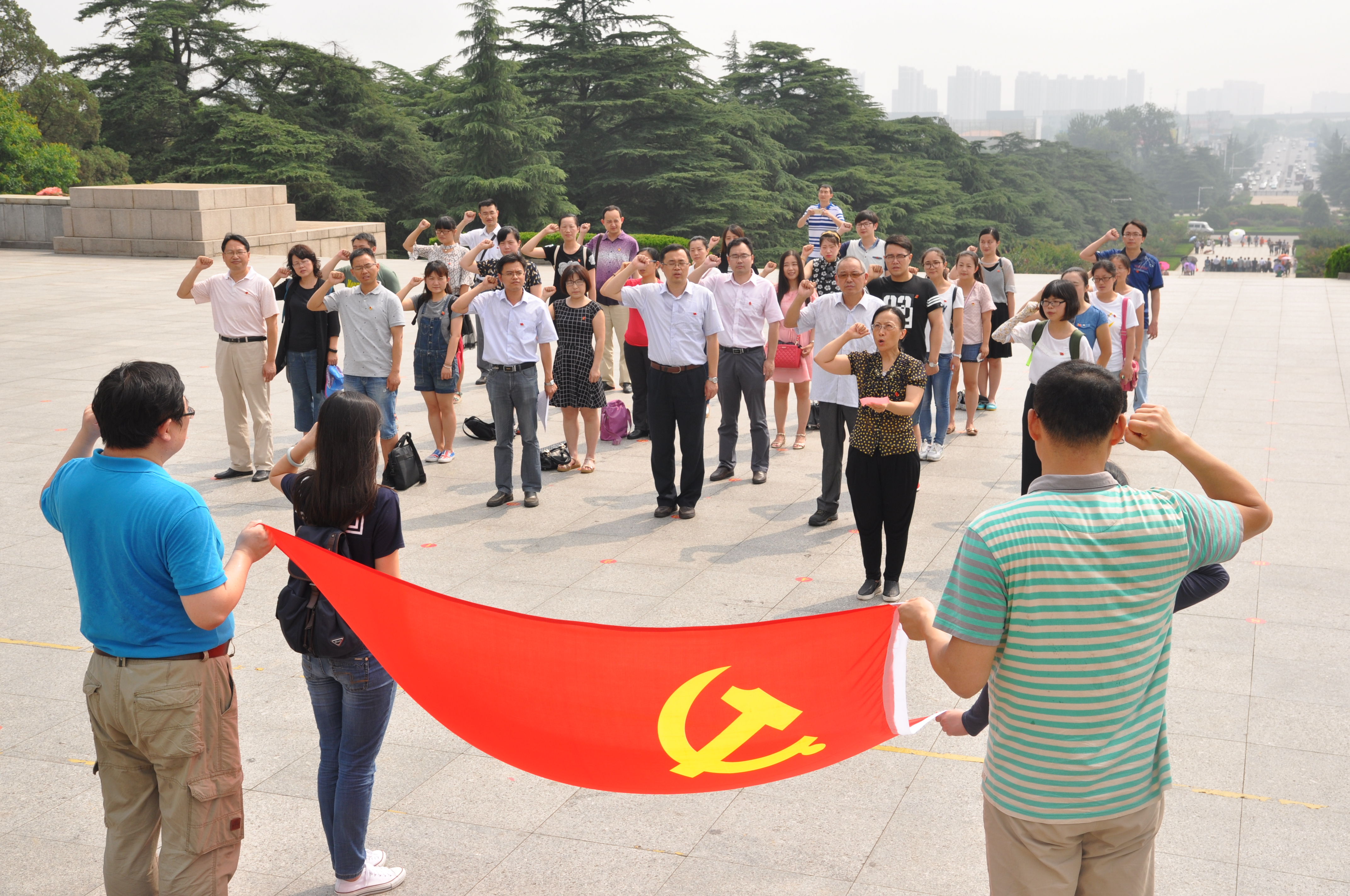 首先,在花篮和党旗的引领下,全体党员怀着崇敬的心情、神情庄重地列队拾阶而上,登上淮海战役烈士纪念塔广场,在巍巍纪念塔前举行了庄严的“缅怀革命先烈、重温入党誓词”活动。仪式在高唱《国歌》中开始,国歌唱毕,全场肃立,向革命烈士默哀;在向革命烈士敬献花篮后,宋家荣副书记带领党员高举右拳,面对鲜红的党旗重温入党誓词。宣誓仪式后,全体党员围绕烈士纪念塔缓步绕行,深切表达缅怀之情。