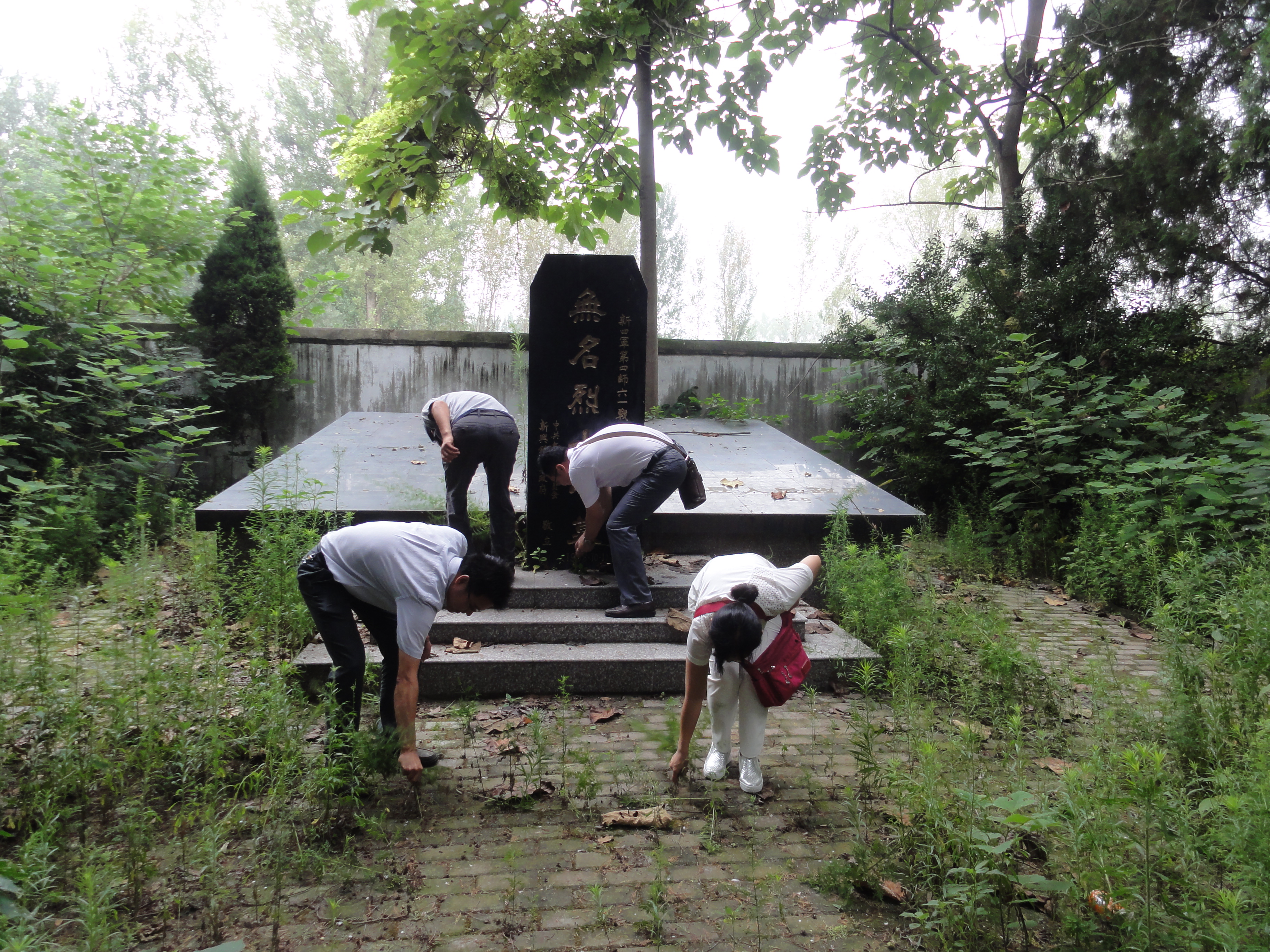 在六一战斗革命烈士纪念陵园,全体党员怀着崇敬的心情,认真仔细地将纪念碑塔座四周和无名烈士墓前的杂草、落叶、垃圾等加以清除。接着,全体党员深情缅怀为了国家的独立和民族解放而英勇牺牲的无名烈士,瞻仰纪念碑和无名烈士墓,衷心地感谢革命先烈为大家创造出的美好生活和来之不易的幸福时光。