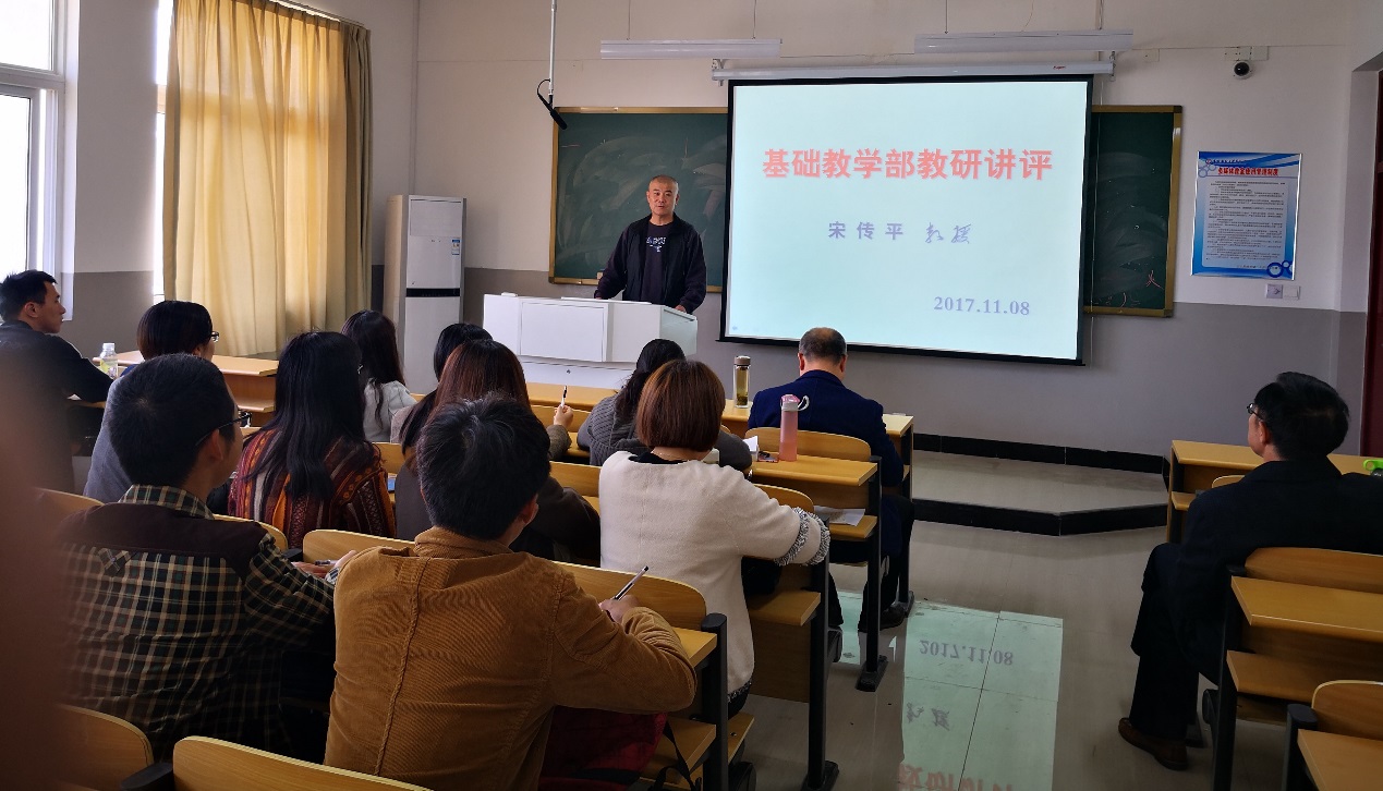 11月8日下午,我院基础教学部教研讲评活动在德润楼A309举行。此次活动邀请学院教学督导宋传平教授作教研讲评报告,基础教学部全体教师及部分其他系部教师参与活动。活动由基础教学部主任叶方同主持。
