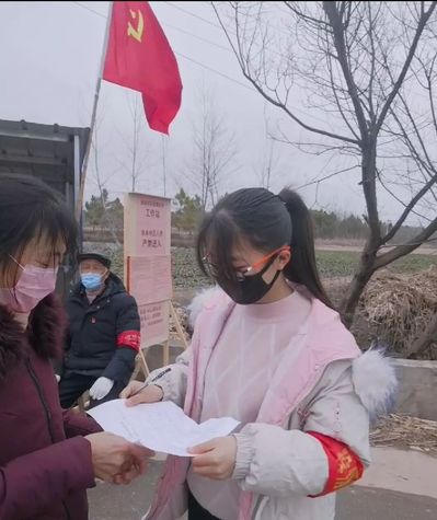 高敏同学现在在安徽六安市霍山县太阳村参加志愿活动。作为我院学生第一党支部的一名党员,在看到基层防疫工作人员的背影后,积极捐款并主动提出参加防疫抗疫志愿活动。现主要工作为在各个路口卡点值班,拦截检查外来车辆及人员,并进行登记,保障当地居民安全。