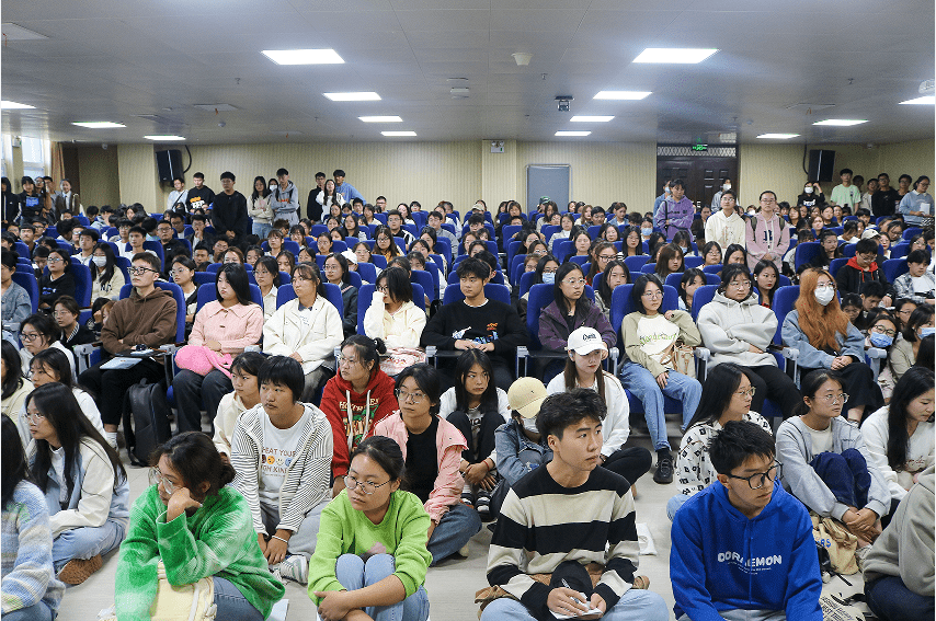 在交流互动环节,一些学生还积极提问了关于专业学习和人生成长的问题,也得到了宋教授的充分解答。在一个半小时的讲座期间,师生们聚精会神,沉浸在这场知识盛宴之中。虽然图书馆五楼两个报告厅的座位已经早早坐满,但大家热情不减,很多同学为了聆听宋教授的讲座,甚至席地而坐或倚墙而立。现场氛围十分热烈,体现了学校的优良校风。讲座之后,大家纷纷表示,听了宋教授的讲解,对营销竞争有了全新的认识和更深入的理解,下一步将努力把今天的所学所得运用到实际工作生活中去。