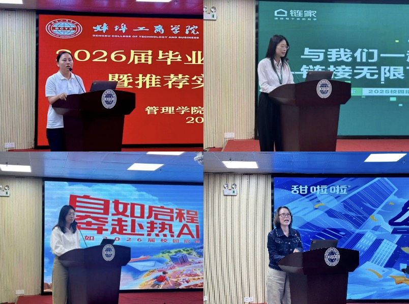推荐实习宣讲,搭建实习就业直通车。管理学院与数据科学与应用学院联合举办了“实习动员暨企业宣讲会”,汪时珍副校长为同学们做实习动员讲话。京东物流、甜啦啦、上海链家等10家优质企业进行了宣讲,提供了覆盖物流、科技、营销等多个领域的实习岗位。宣讲会后,两学院联合举办了双选会,毕业生们与企业HR积极交流,累计投递简历1800余份,达成初步实习意向186人。市场营销系与北京自如企业深度合作,在企业导师完成行业趋势分析和岗位需求介绍后,立即组织现场面试,实现“即学即用、即评即选”的无缝衔接。