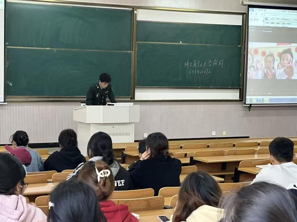 为积极响应国家号召,引导青年学子将个人理想融入强国强军伟业,近日,在学校人武部的指导下,由“八一社”开展的征兵宣讲活动在笃行楼A102顺利举行。作为校级重点国防教育活动,此次宣讲以“精准触达、热血赋能”为目标,通过校园公告、新媒体平台等多渠道宣传,吸引百余名有志青年积极参与活动。