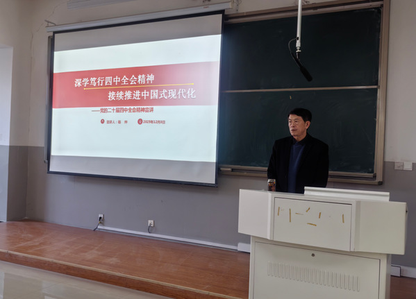 为推动党的二十届四中全会精神在校园落地生根、入脑入心,12月3日下午,督导专员兼党委书记杨烨以“深学笃行四中全会精神,接续推进中国式现代化”为题,为23级学生作专题辅导报告。