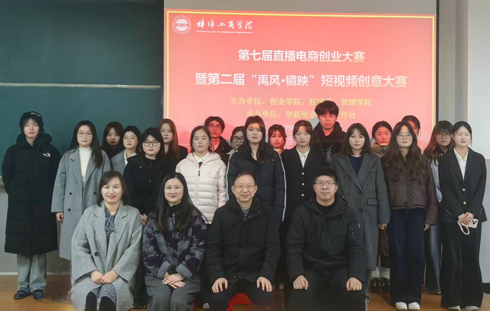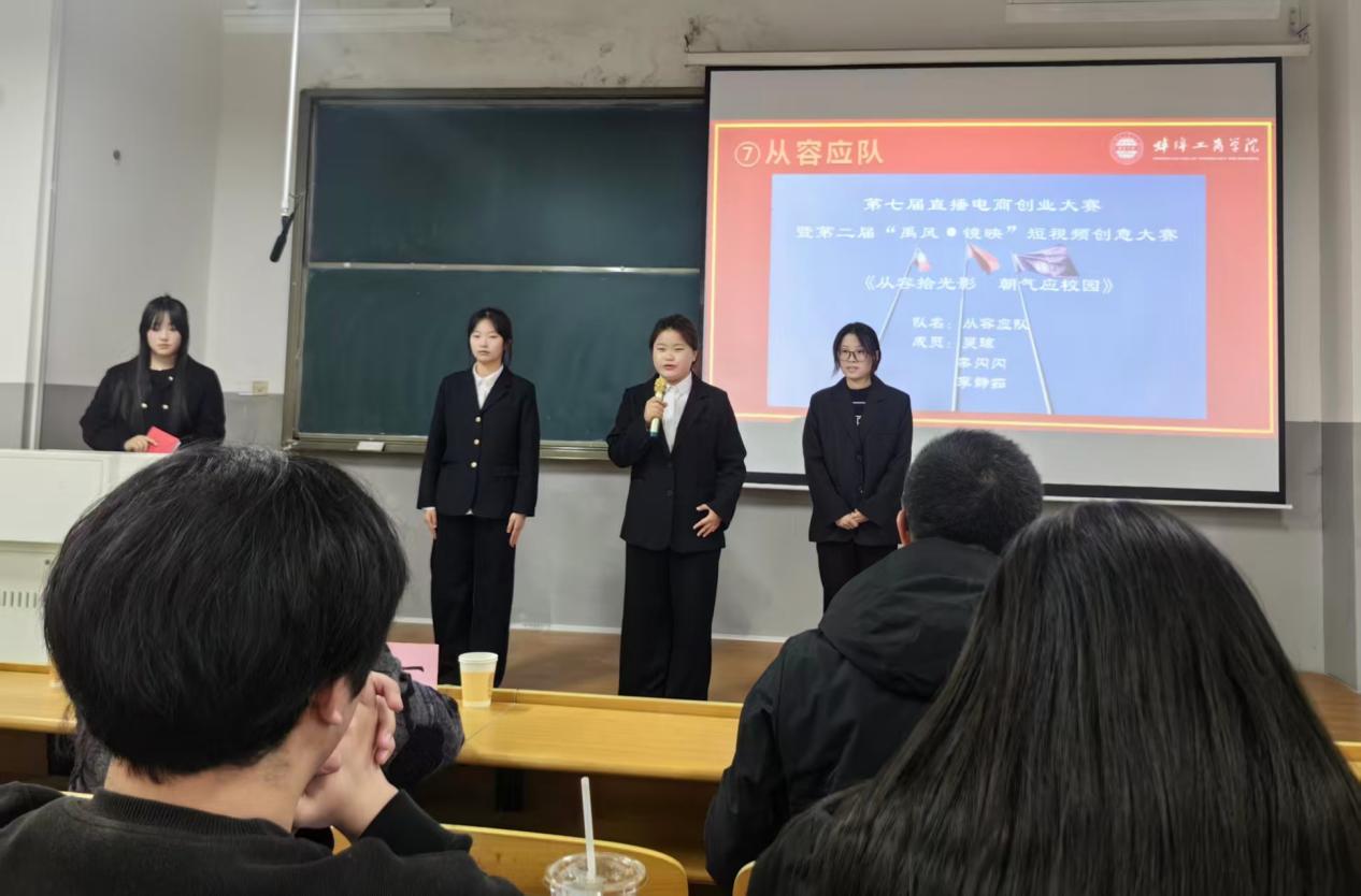 为积极响应国家“大众创业,万众创新”号召,12月17日,蚌埠工商学院第七届直播电商创业大赛暨第二届“禹风·镜映”短视频创意大赛决赛路演活动在格物楼A101圆满举行。本次大赛由创业学院、校团委、管理学院联合主办,创新创业实践工作社承办,全校学生积极参与,共筑一场兼具思想性、艺术性与创新性的青春创意盛宴。