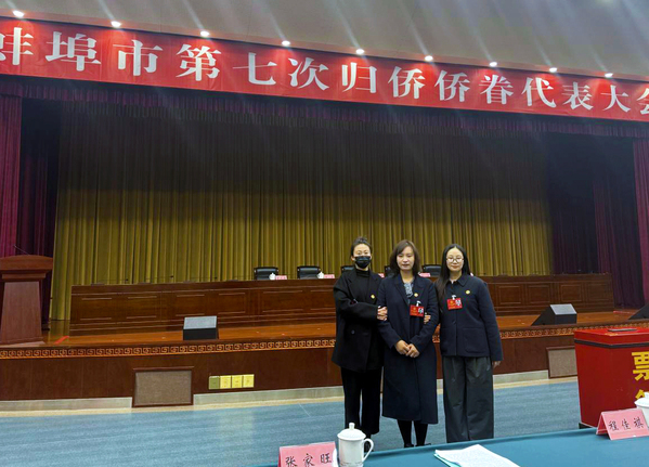 12月19日,蚌埠市第七次归侨侨眷代表大会在蚌埠市人民政府召开。市委书记、市长马军,省侨联党组书记、主席王汪苗出席并讲话。我校管理学院副院长金诺、国际商务学院专任教师江珊、组织(统战)部科员王星宇作为代表参加本次大会。