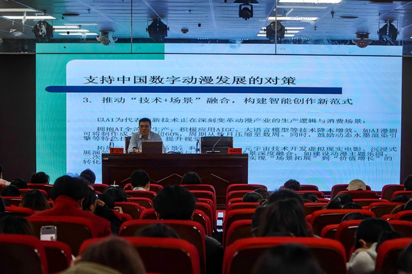 在互动交流环节,裴教授就文化出海与人才培养等问题与师生进行深入交流。本场讲座视野开阔、案例丰富,既是一堂生动的动漫产业通识课,也是一场关于文化自信与创新发展的思想启迪。讲座在热烈的掌声中圆满结束。(文/桑启悦 图/崔梦宇 审/马书琪)