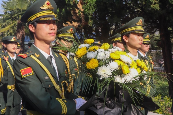 清晨的烈士陵园松柏苍翠、庄严肃穆,革命烈士纪念碑巍然矗立,静静诉说着波澜壮阔的革命岁月,承载着无数先烈的赤胆忠心。国旗护卫队队员精神抖擞、神情凝重,整齐列队于纪念碑前,身姿挺拔、目光坚毅,一场致敬英烈、铭记历史的祭扫仪式正式开启。