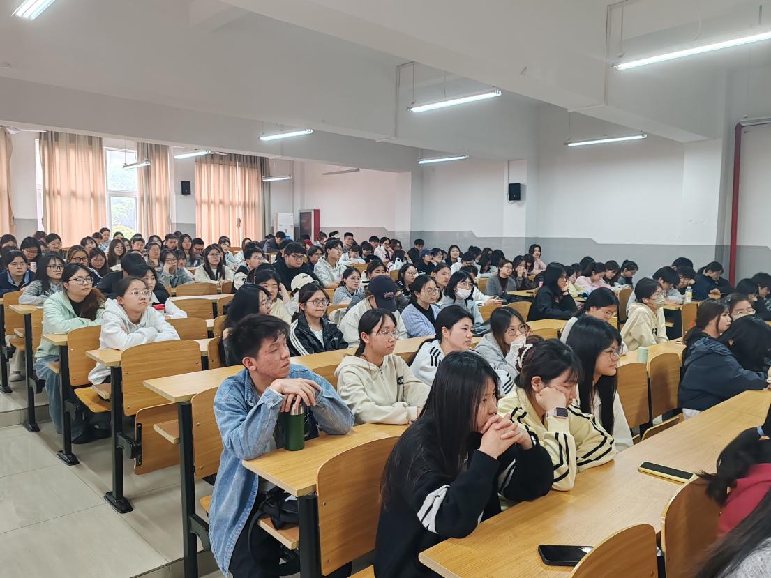 阮进兵深入解读习近平总书记提出的“有理想、有追求,有担当、有作为,有品质、有修养”的“六有”大学生内涵,指出这是党性要求在青年大学生身上的具体体现,是有机统一的整体。他结合学院学生考研考编、学科竞赛、志愿服务、参军入伍等实例,鼓励大家摒弃“佛系”“躺平”心态,将个人理想融入国家发展与民族复兴伟业。